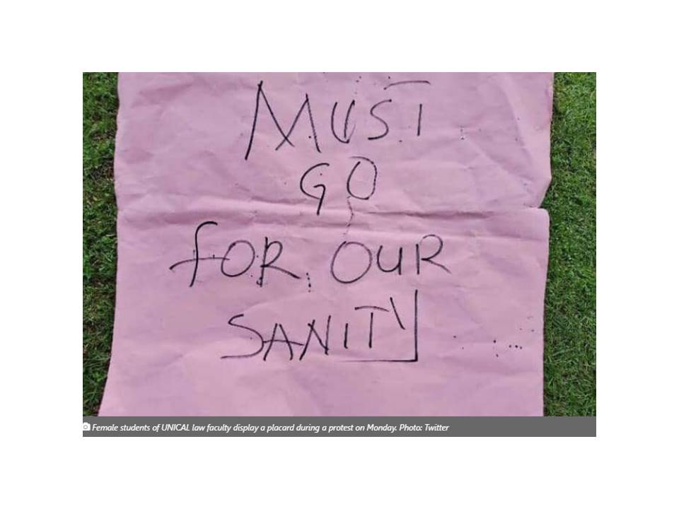 On Monday, some female students, led by Benedict Otu, the president of the Law Students Association of Nigeria (LAWSAN), held a protest, demanding the sack of Ndifon.